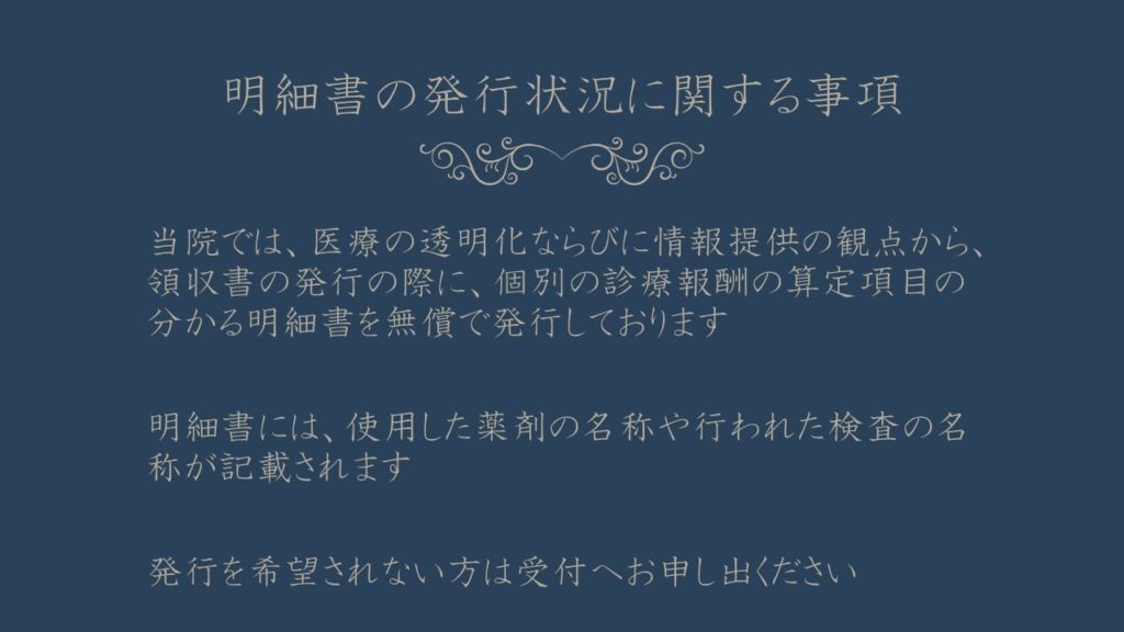 診療時間終了間際のご来院は、その内容により別日にご予約いただくことがあります。ご了承願います。